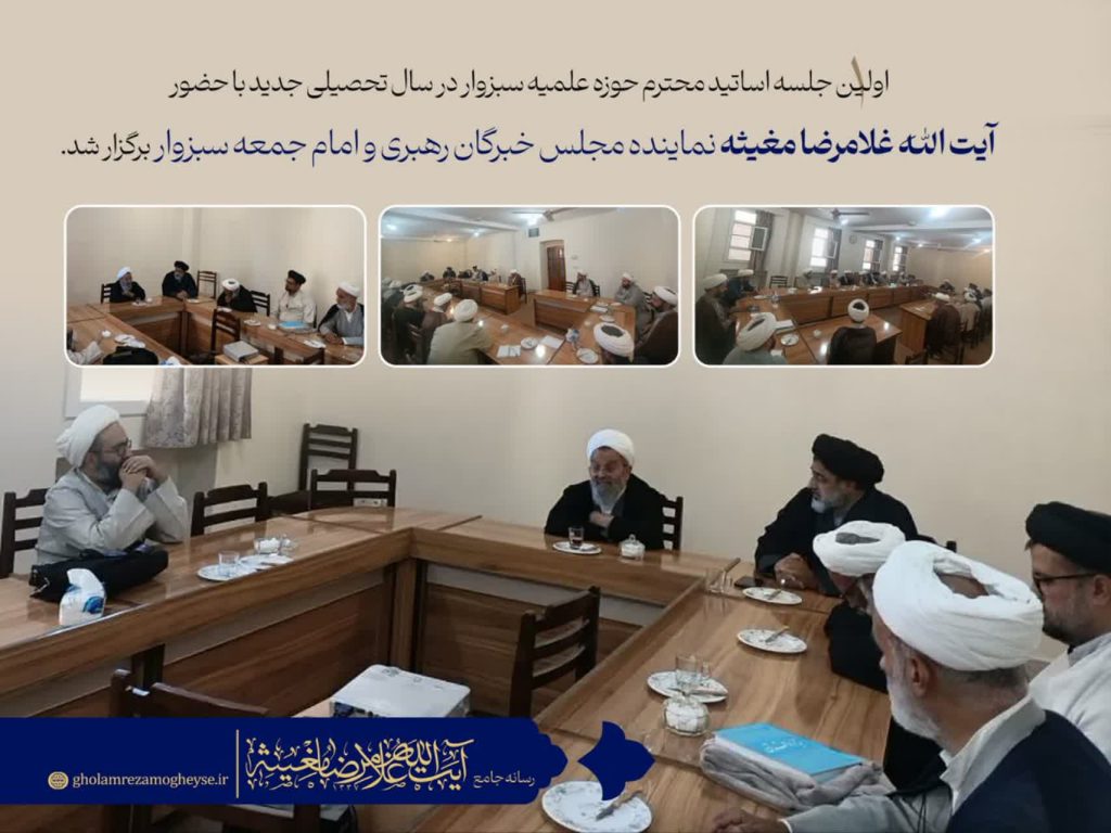 ⭕️ اولین جلسه اساتید محترم حوزه علمیه سبزوار در سال تحصیلی جدید با حضور حضرت آیت الله غلامرضا مغیثه نماینده مجلس خبرگان رهبری و امام جمعه سبزوار یکشنبه ظهر مورخ ۱۳ مهرماه ۱۴۰۴ در محل مدرسه علمیه ی اهل البیت علیهم السلام سبزوار برگزار شد.