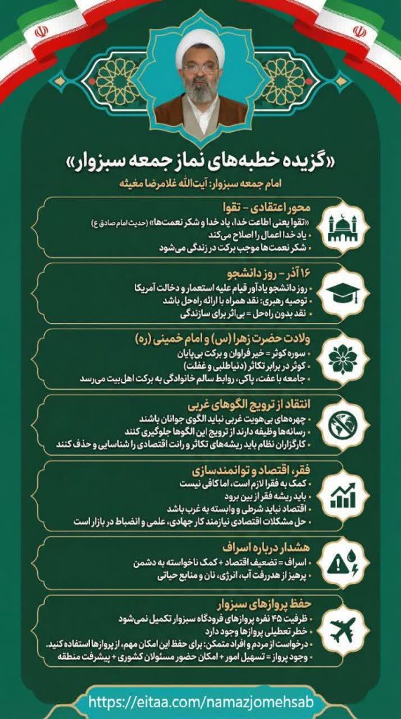 اینفوگرافی گزیده‌ی خطبه‌ های نماز جمعه ی سبزوار 14 آذر ماه 1404